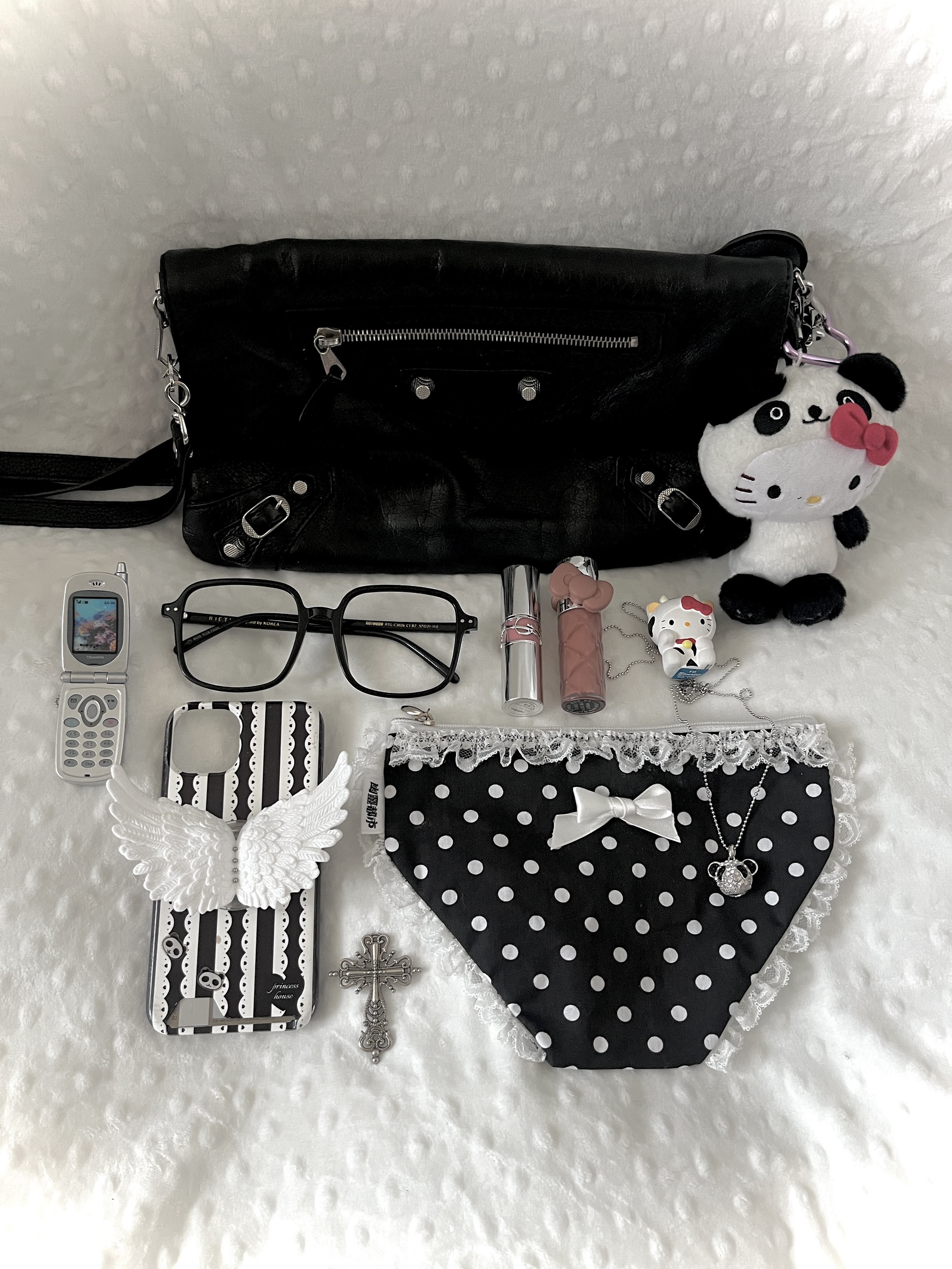 겉감은 도트 패턴의 면 원단을 사용하였고 안감은 튼튼한 면 원단을 사용하여 제작하였습니다.